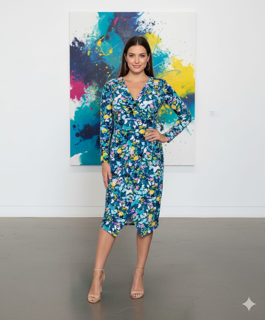 Rachel Rachel Roy Plus Size Floral-Print Faux-Wrap Dress - Blue Yellow Floral